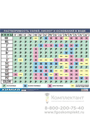 Таблица демонстрационная Растворимость солей, кислот и оснований в воде (винил 70х100)