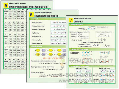 Комплект таблиц по алгебре раздат. Алгебра. Числа. Формулы (цвет., лам., 10 шт.)