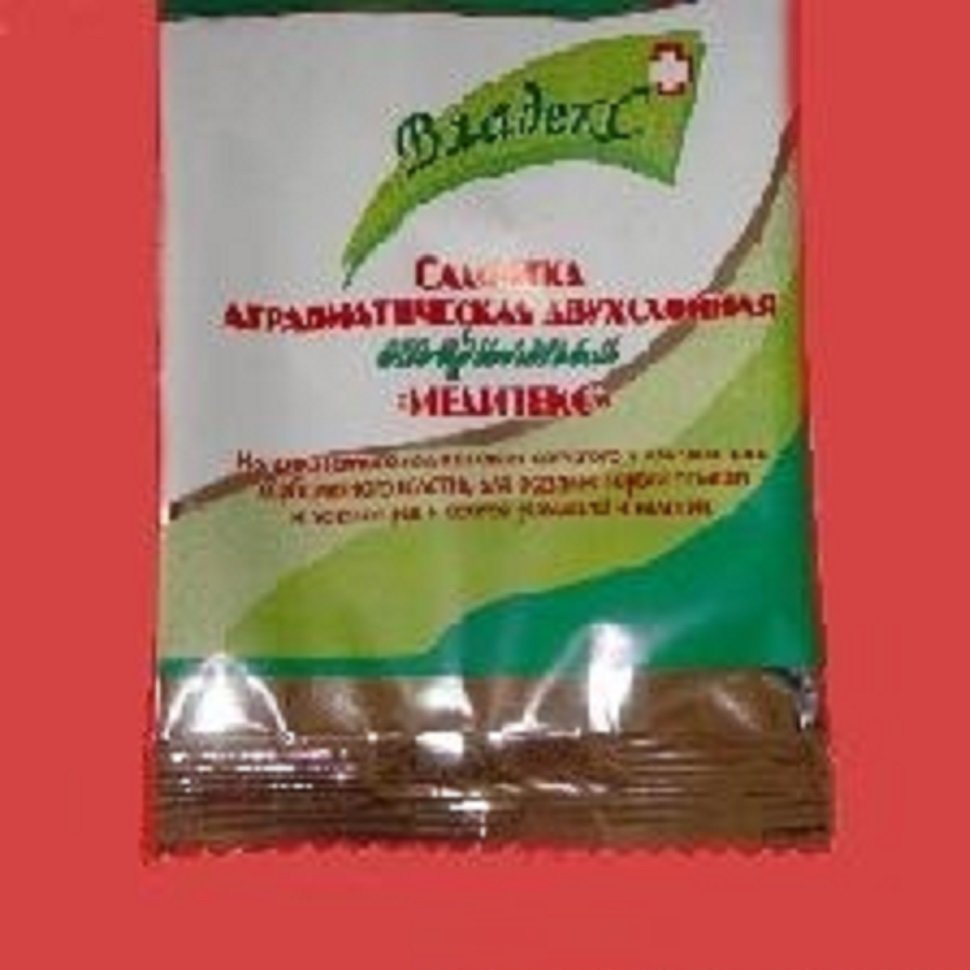 Представляет собой готовое к применению перевязочное средство, состоящее из двух слоев:
