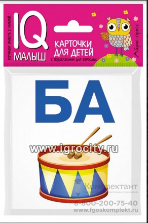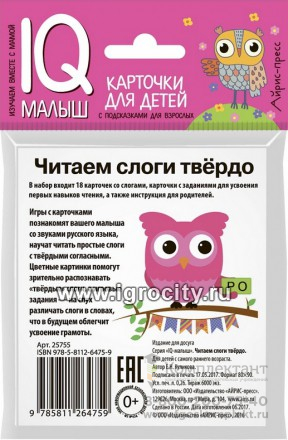 Карточки для детей "IQ малыш. Читаем слоги твердо" Айрис-Пресс, размер карточки 8х9 см, арт. 25755