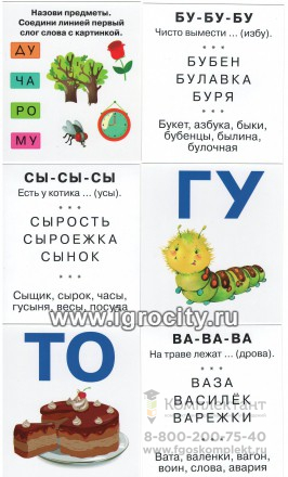 Двусторонние карточки "Читаем слоги твёрдо" знакомят малыша со слогами в словах русского языка, которые читаются "твёрдо", они образованы с помощью гласных А, О, У, Ы. В набор входит 18 карточек со слогами, 3 карточки с заданиями и карточка с инструкцией для взрослых. На цветной стороне каждой карточки изображены предмет и слог (или сочетание букв), с которого начинается название этого предмета. На обороте карточек представлены игровые задания для развития у детей умения воспринимать на слух и произносить "твёрдый" слог: Чистоговорка с заданным слогом. Примеры слов, начинающихся с данного слога.Игра со словами, цель которой - научить малыша различать звуки, определять на слух место данного слога в слове и отличать его от других слогов. Состав: 18 двусторонних карточек с картинками. 3 карточки с заданиями. Яркая глянцевая печать. Плотный картон. + Простая инструкция для занятий.
