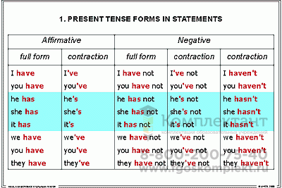 п/п Английский язык. Глагол have как вспомогательный (17+8)