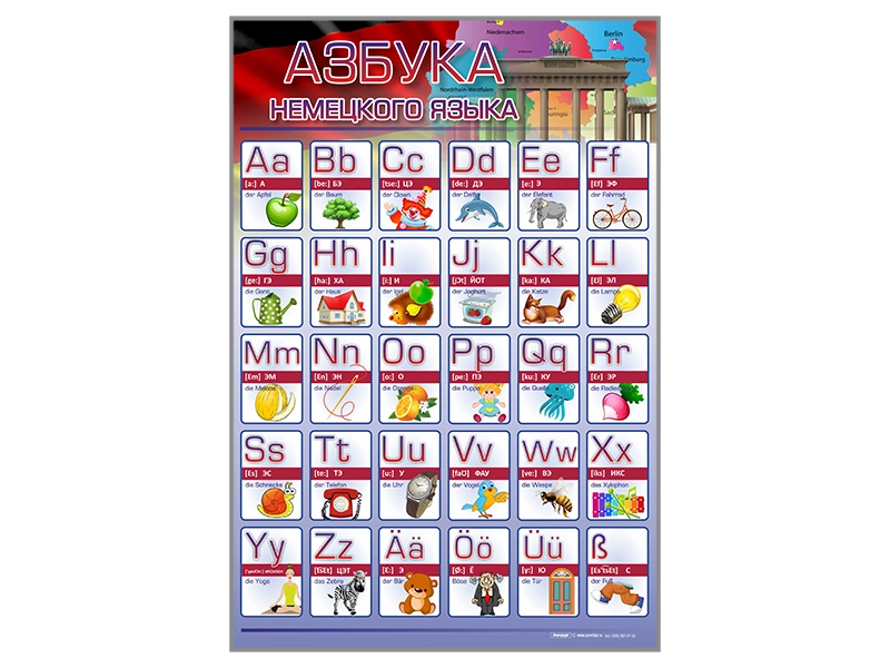 Стенд представляет собой панель, на которой изображены буквы алфавита иностранного языка.