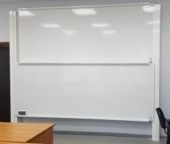 Размер доски 2000х1220 мм 2300x1220 мм 2500x1220 мм 3000x1220 мм Ширина системы 2200 мм 2500 мм 2700 мм 3200 мм Комплект 2 доски на четырёх колоннах Цвет доски Зеленый / Белый / Черный / Синий Высота колонн до 317 см Цвет колонн и рамки Белый Поверхность Полимерная / Металлокерамика