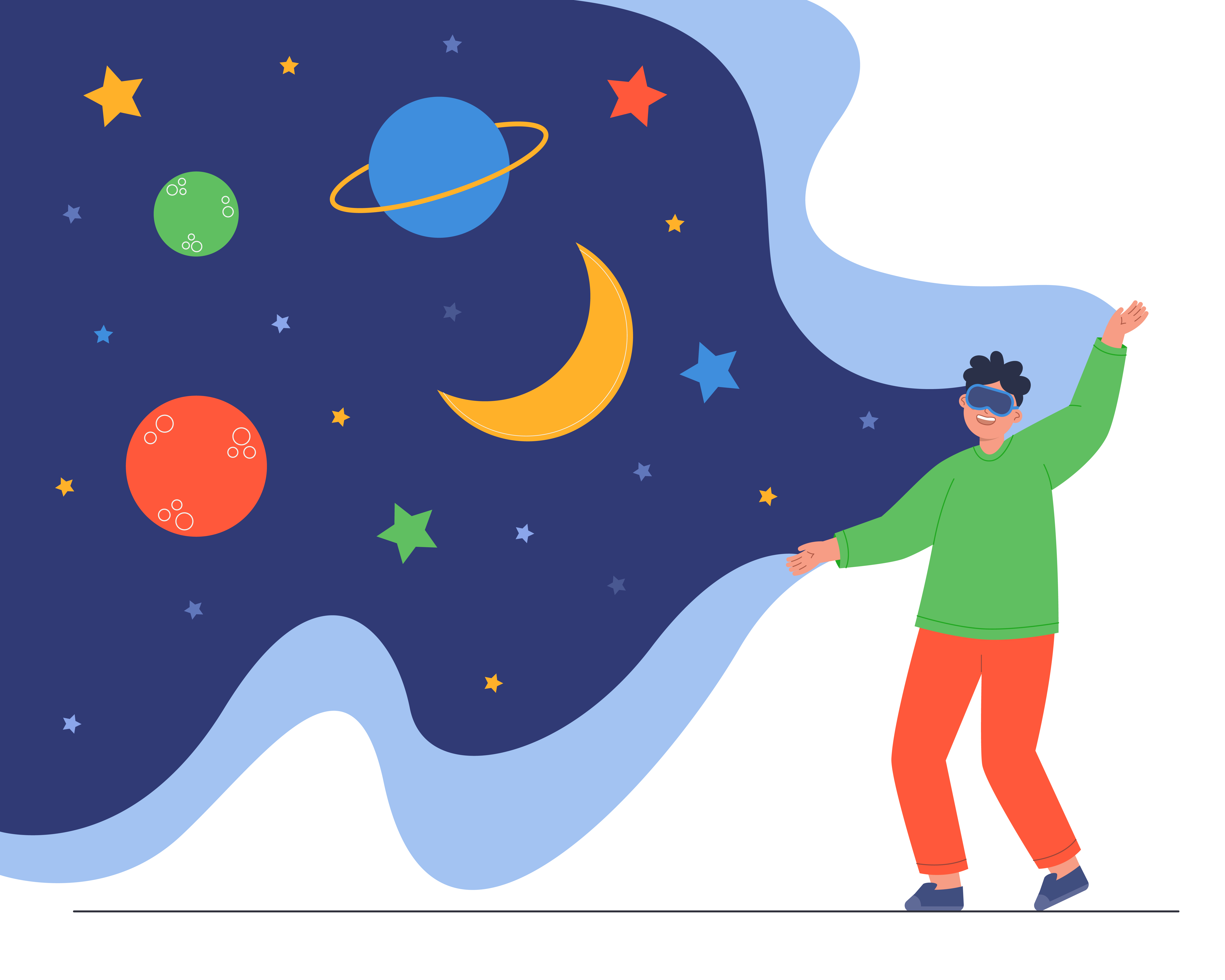 С помощью VR приложения пользователи могут изучать аспекты астрономии и космонавтика в формате слушателя (интерактивное кино) и проходить мини-квесты.