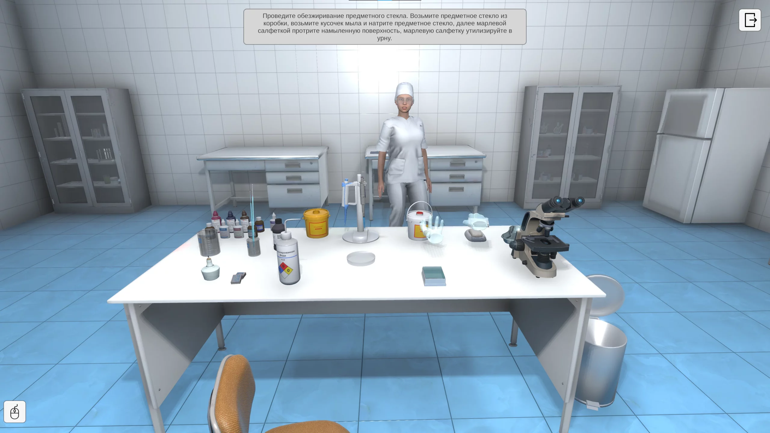 В тренажере реализованы сценарий лабораторных работы с микроскопированием