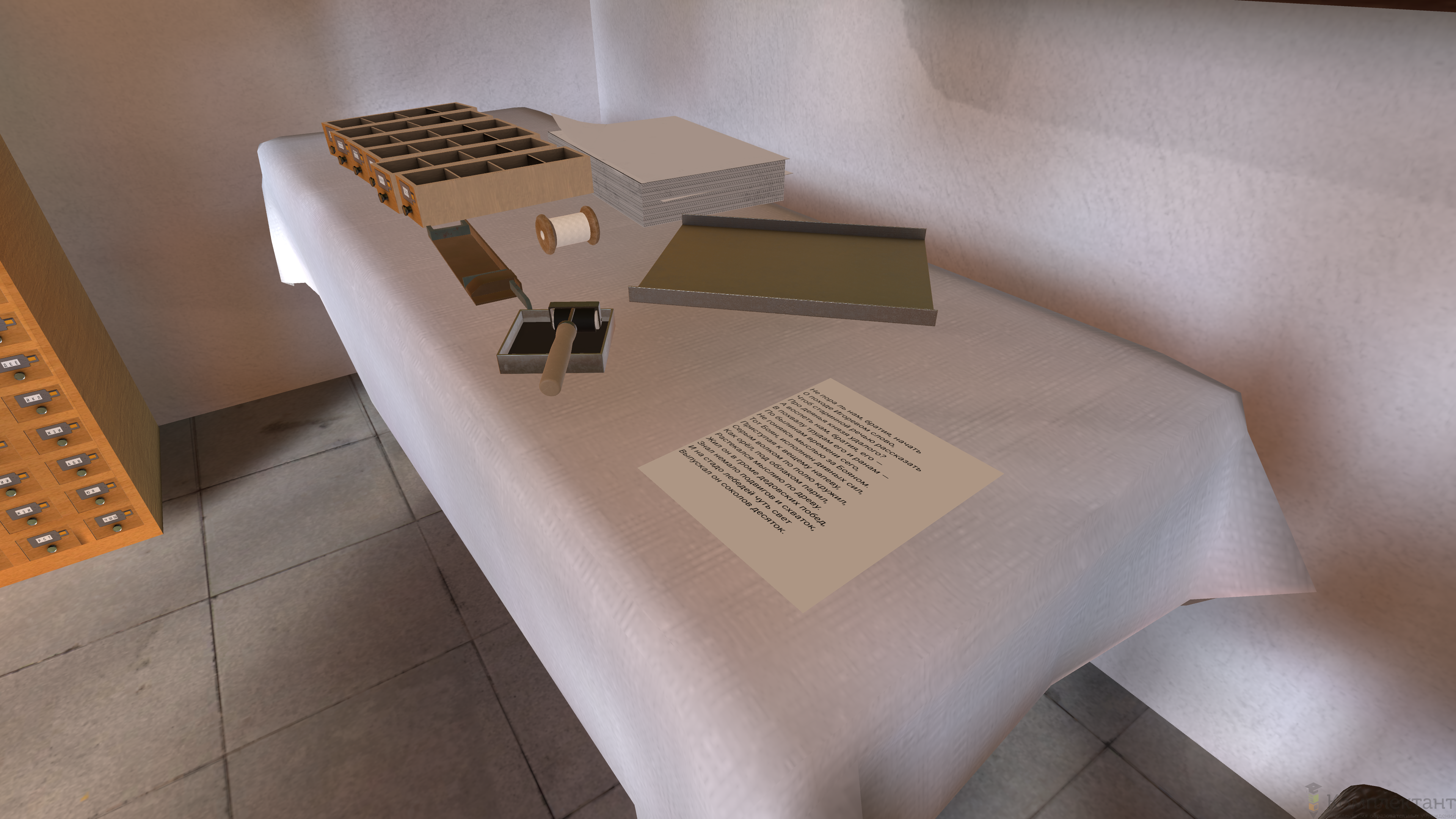 набор литер, чернильница, стопки бумаги и многое другое. Пользователю
