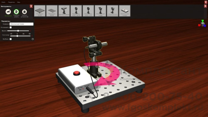 В режиме эксперимента можно запустить лазер для проведения эксперимента.