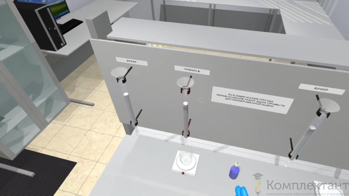 Виртуальный (VR) тренажер «Лаборант-аналитик химического производства» воссоздает ситуацию работы в лаборатории, где специалист взаимодействует с химическим оборудованием. VR-тренажер позволяет пользователю проходить симуляцию с целью обучения ключевым навыкам, которыми должен обладать специалист химической лаборатории. В симуляции предоставлена возможность изучить и выработать навыки использования сложного лабораторного оборудования (хроматографом, анализатором, весами 1 категории, пластометром). Также сотрудники обучаются технике безопасности на объекте.