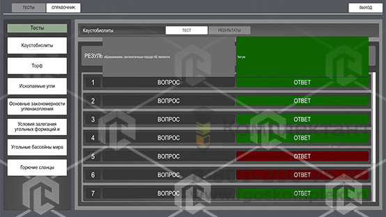 Специализированное программное обеспечение программного модуля геология нефти и газа, позволяющее наглядно отображать классификацию каустобиолитов. Позволяет изучать состав и различные свойства каустобиолитов. В программе реализована проверка знаний в виде контрольного тестирования.
