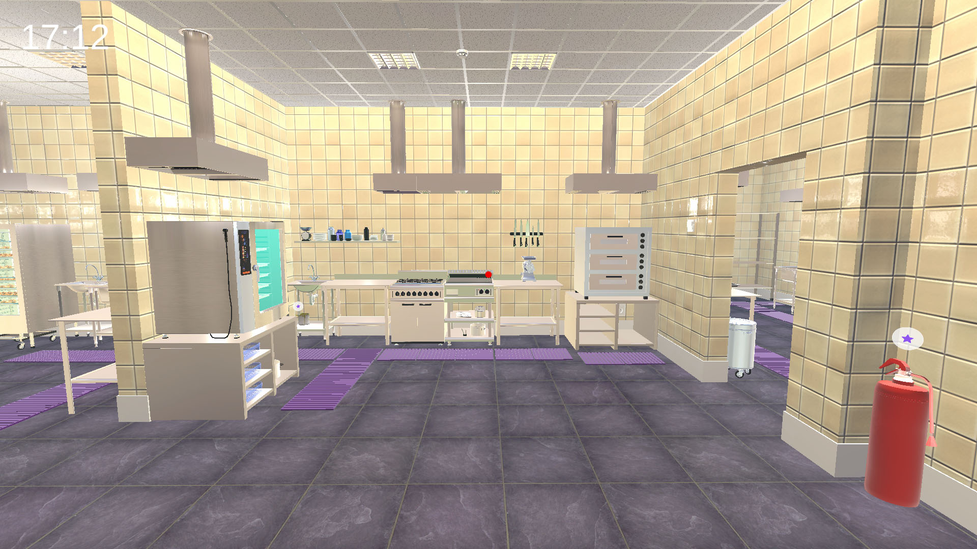 Этап 2. Выявление нарушений на рабочем месте. Пользователь исследует виртуальную кухню и отмечает обнаруженные нарушения техники безопасности и санитарных требований.