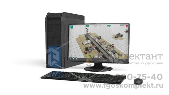 В ПО реализована анимированная 3D модель-симулятор производственной линии, включающая следующие производственные участки работы: