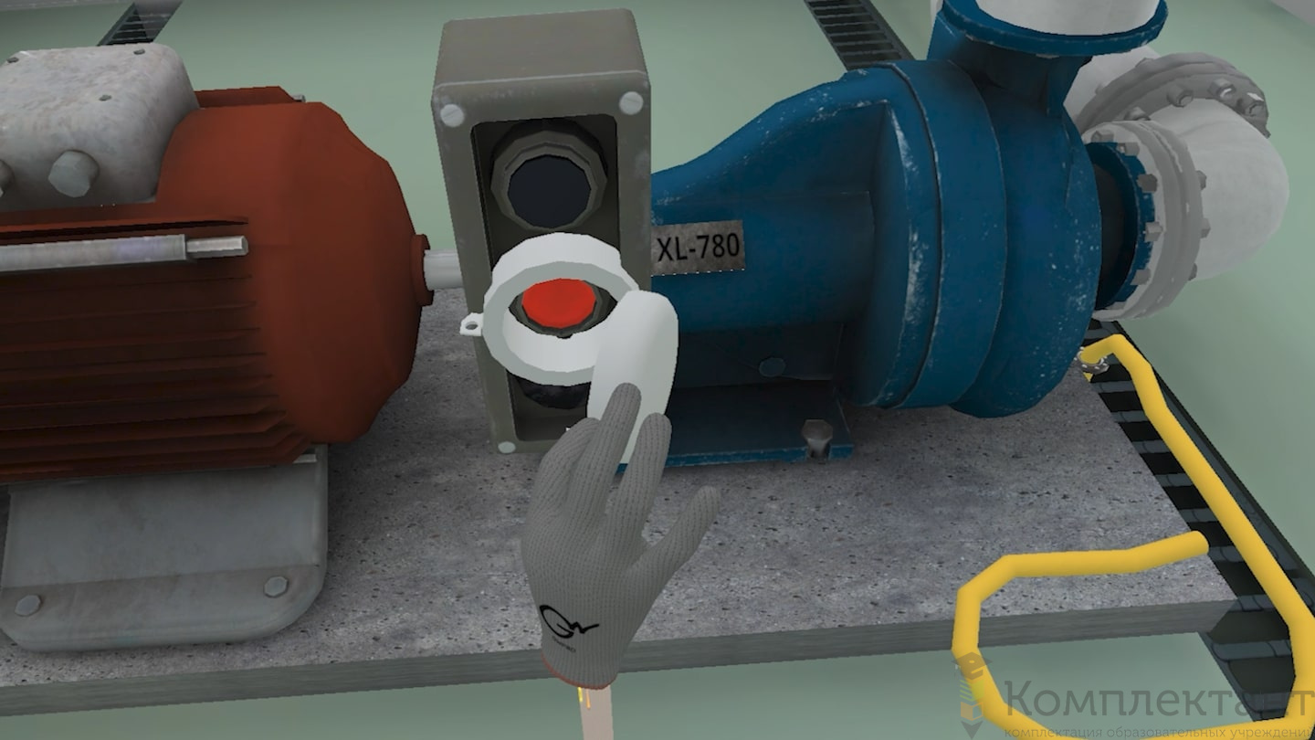Виртуальный (VR) тренажер «Маркировка-блокировка» воссоздает ситуацию проведения процедуры блокировки-маркировки. В процессе которой пользователю необходимо временно изолировать оборудование от всех источников энергии и обеспечить такое обесточенное состояние, пока продолжается техобслуживание машины. В симуляции обучающийся должен провести физическую изоляцию электрической и гидравлической опасной энергии в соответствующем оборудовании при помощи инструментов процедуры блокировки-маркировки, а именно: установки блокираторов на систему, далее замка с индивидуальным ключом для пользователя и установки ярлыка маркировки с подписью, датой и указанием проводимых работ.