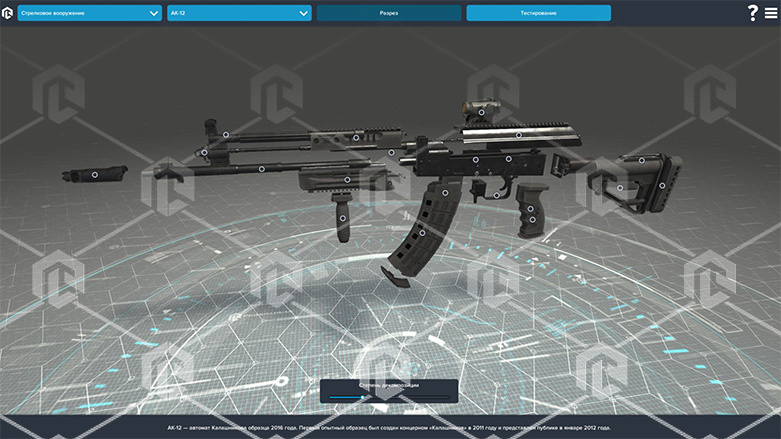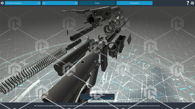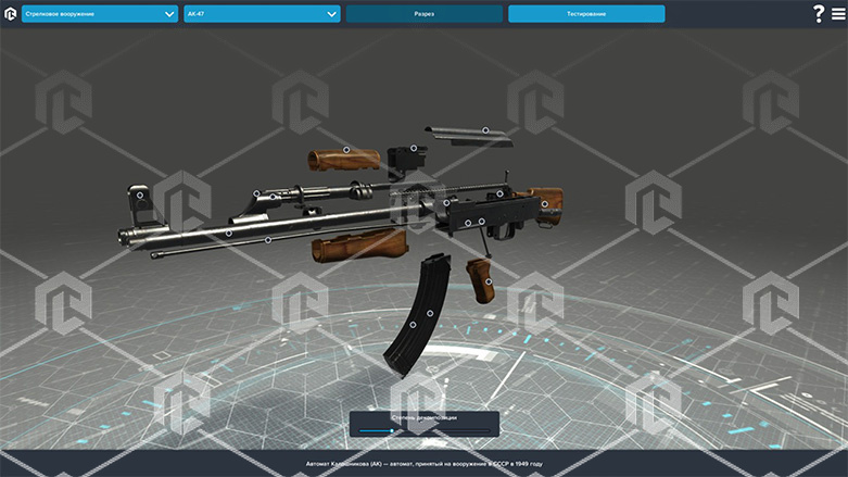 Комплекс позволяет изучить устройство и конструкцию современных видов стрелкового оружия: