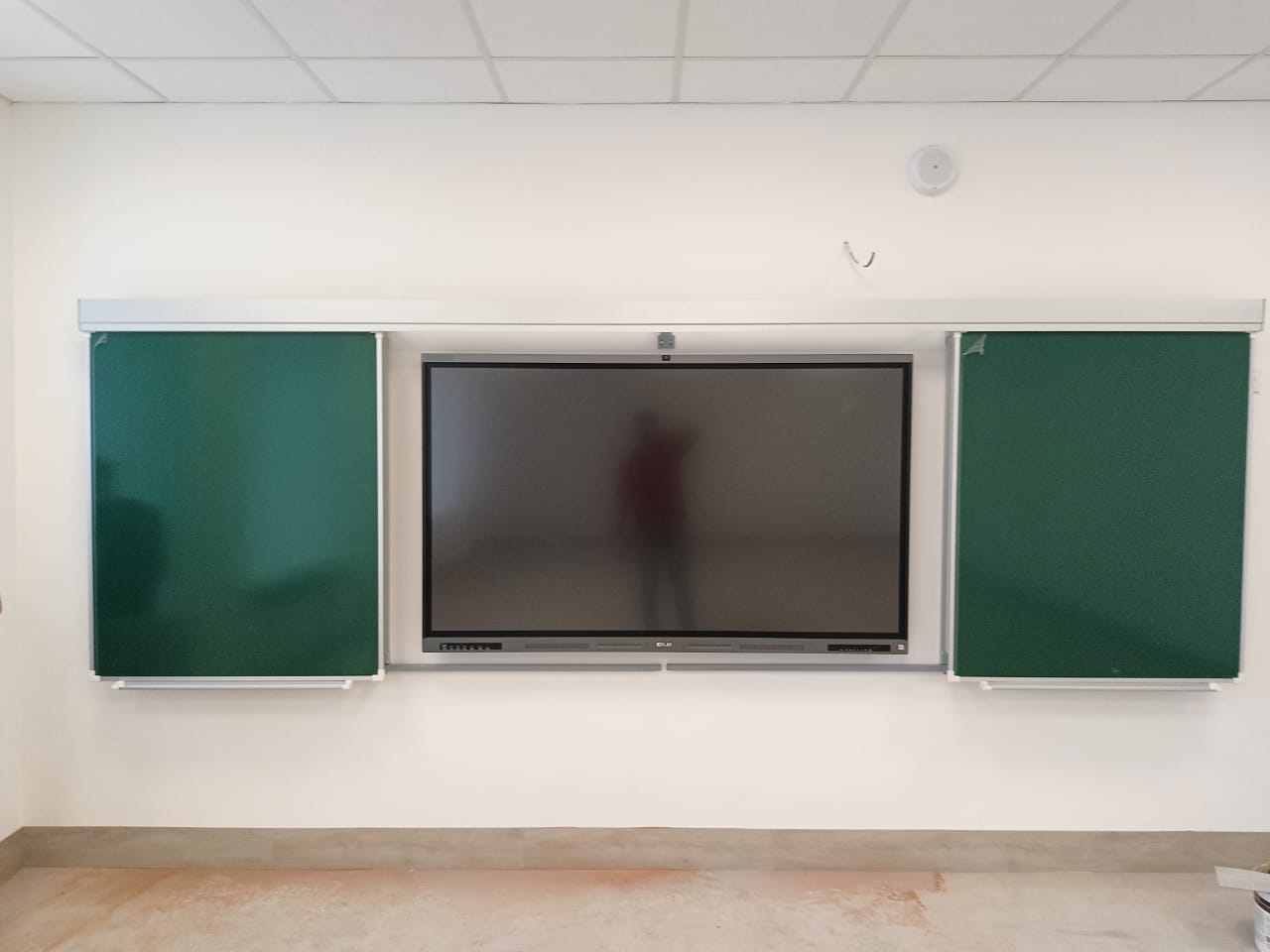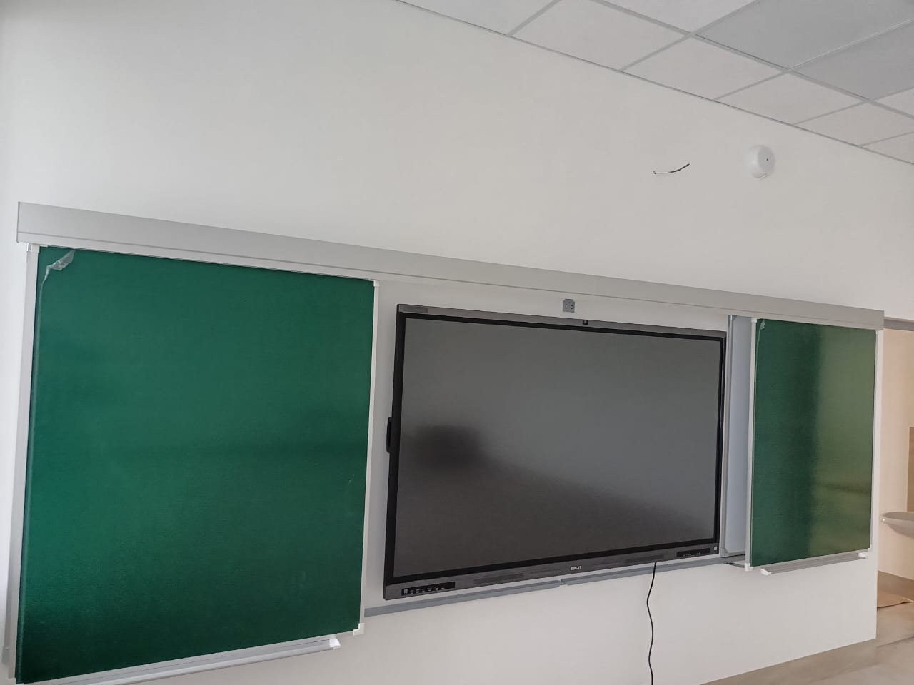 Рельсовая система с передвижными меловыми досками, интерактивной панелью 86” (Android) Рельсовая система с передвижными меловыми досками, интерактивной панелью 86” (Android)